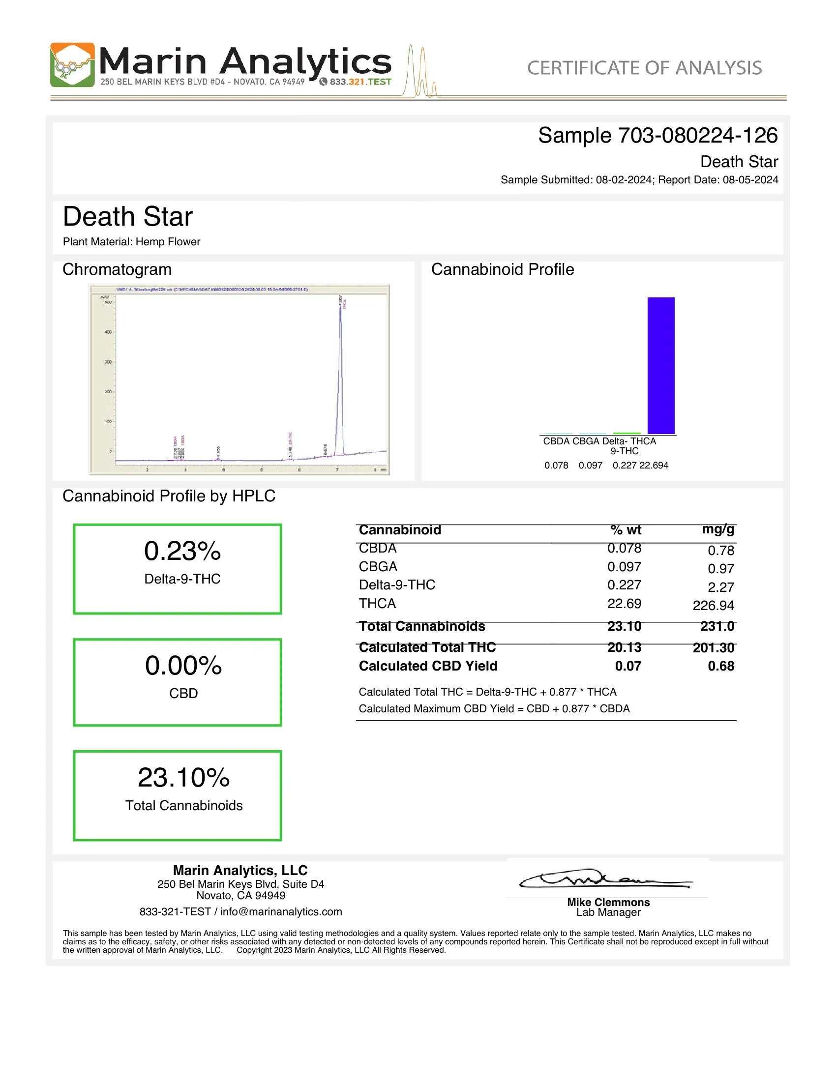 - Total Cannabinoid Contents: 23.1%