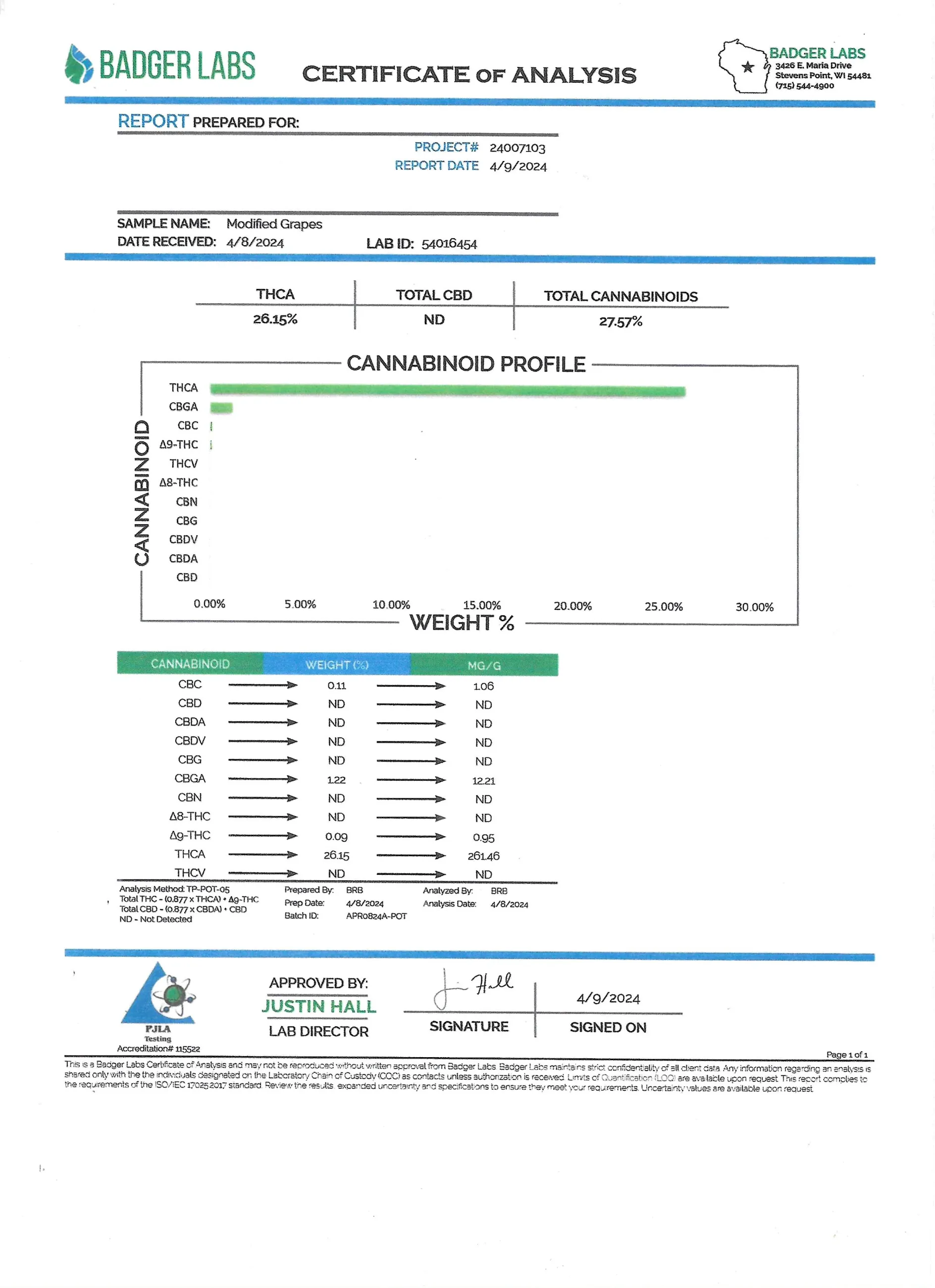 - Total Cannabinoid Contents: 27.57%