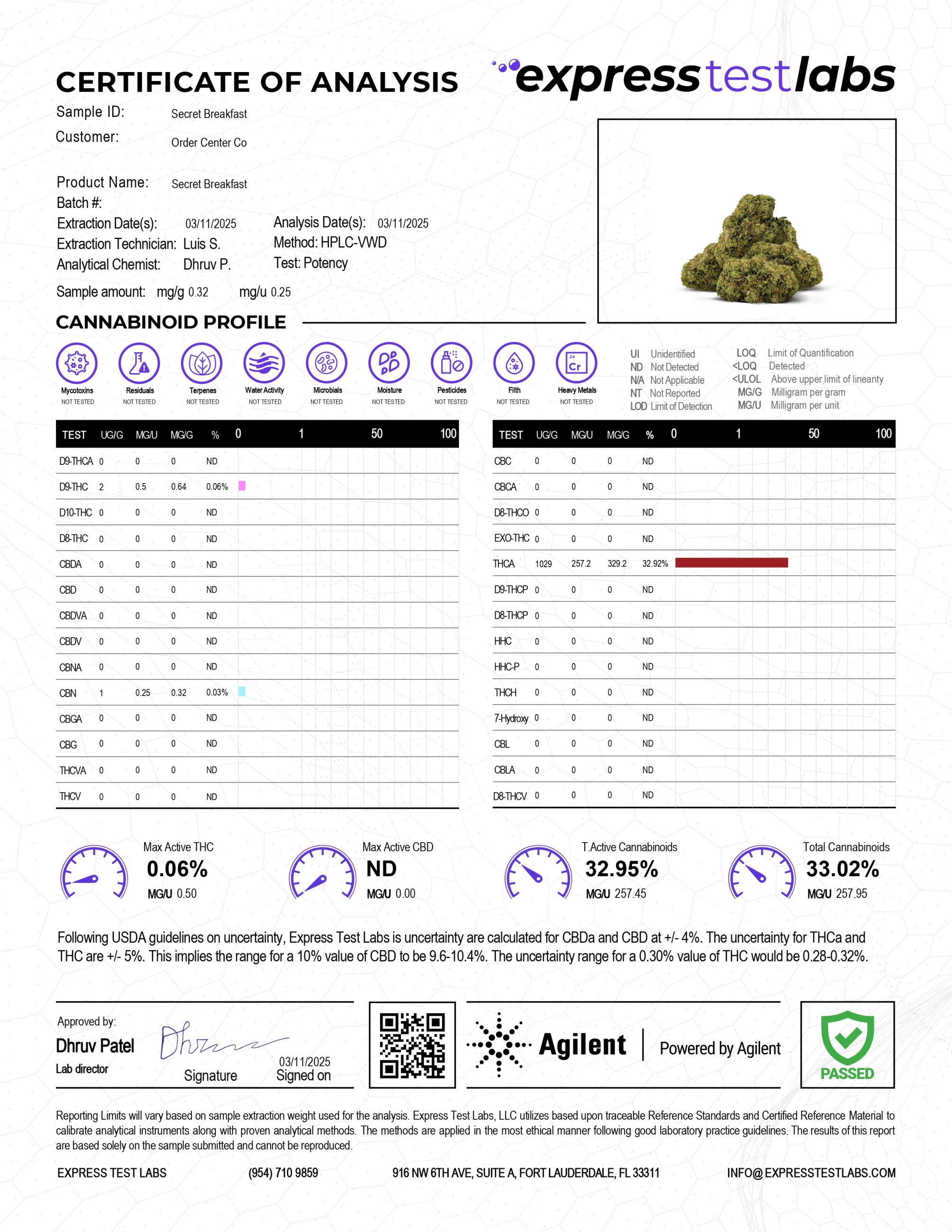 - Total Cannabinoid Contents: 25.82%